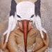 Sold Klein gecraqueleerd portret van een vogelvrouw, gedeeltelijk voorzien van glasdeeltjes.